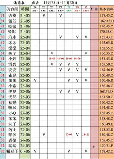 潘朵拉館班表最左邊欄位:  28檯費2800   32檯費3200